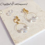 天然石クリスタルとコットンパールのシンプルで上品なピアスです。